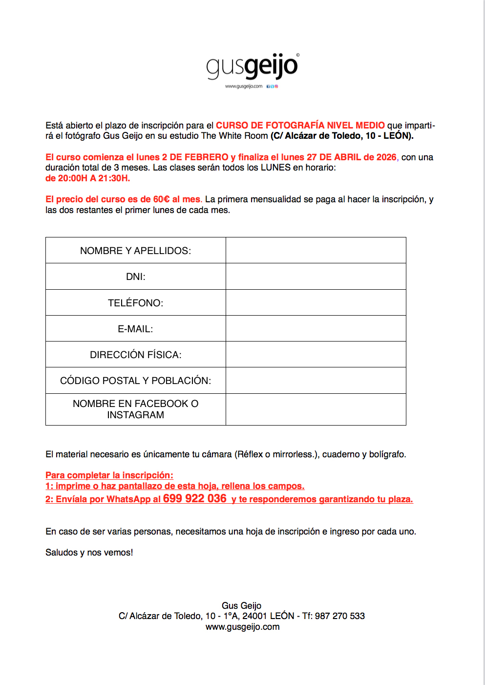 El fotógrafo internacional Gus Geijo imparte este curso de fotografía de nivel medio en su estudio de León.